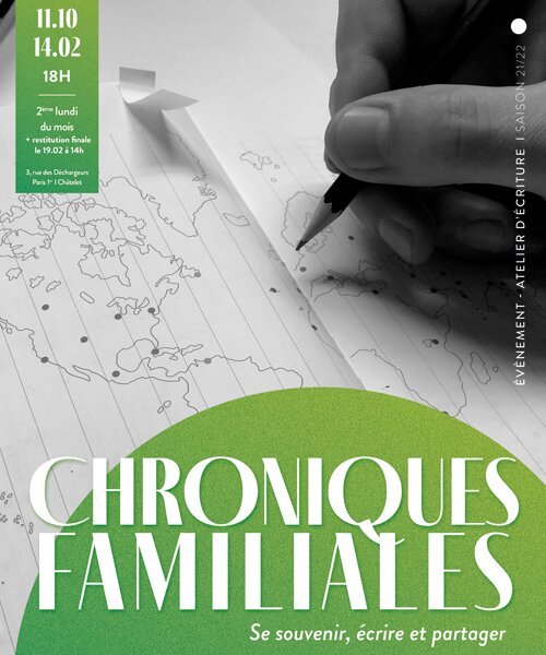 Chroniques familiales est un projet né d’une double dynamique : d’une part, les questions de mémoire et de transmission, qui sont centrales dans mon travail d’autrice et jalonnent tous mes textes ; d’autre part, l’histoire des deux branches de ma famille, purs produits de l’Histoire du 20ème siècle, et la prise de conscience de la nécessité de récolter la parole des témoins du passé tant que cela est encore possible, de garder des traces écrites des souvenirs, de ces petites histoires nichées au cœur de la grande ayant fini par aboutir à notre présence ici et aujourd’hui. Voilà, peut-être, l’objet de ce projet : inviter, par l’écriture, à interroger aujourd’hui à partir d’hier, à chercher comme dans un jeu de piste d’où l’on vient, et pouvoir entendre ces histoires se mêler à celles des autres et peut-être les voir se répondre, s’entrechoquer, se ressembler quels que soient les lieux, les époques, les origines. Chercher, peut-être, une traduction concrète à ce qui nous relie, et à la richesse de nos différences.