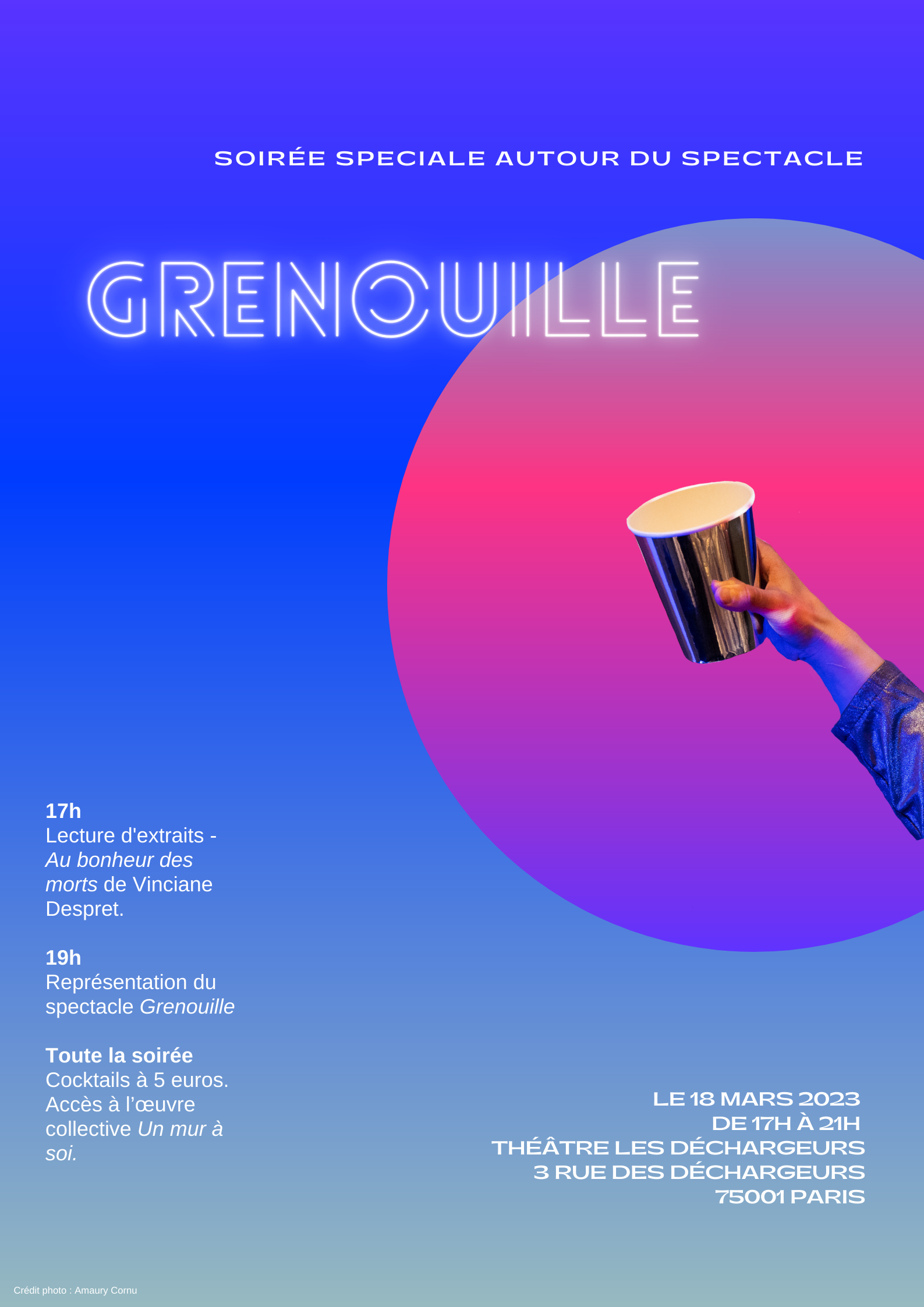 La Compagnie des Humeurs Massacrantes vous invite dès 17h, le samedi 18 Mars, au théâtre Les Déchargeurs pour une soirée spéciale autour de Grenouille.