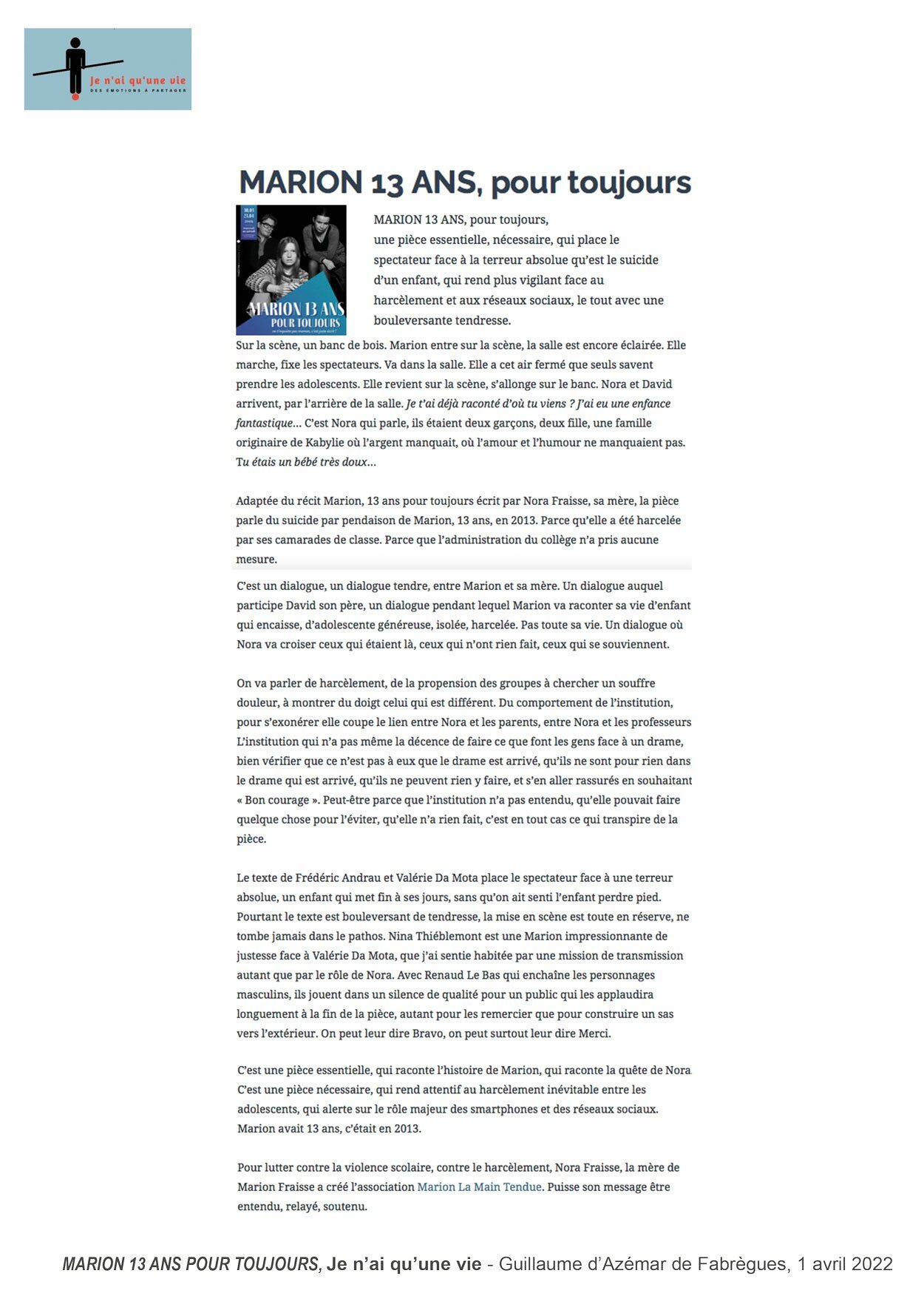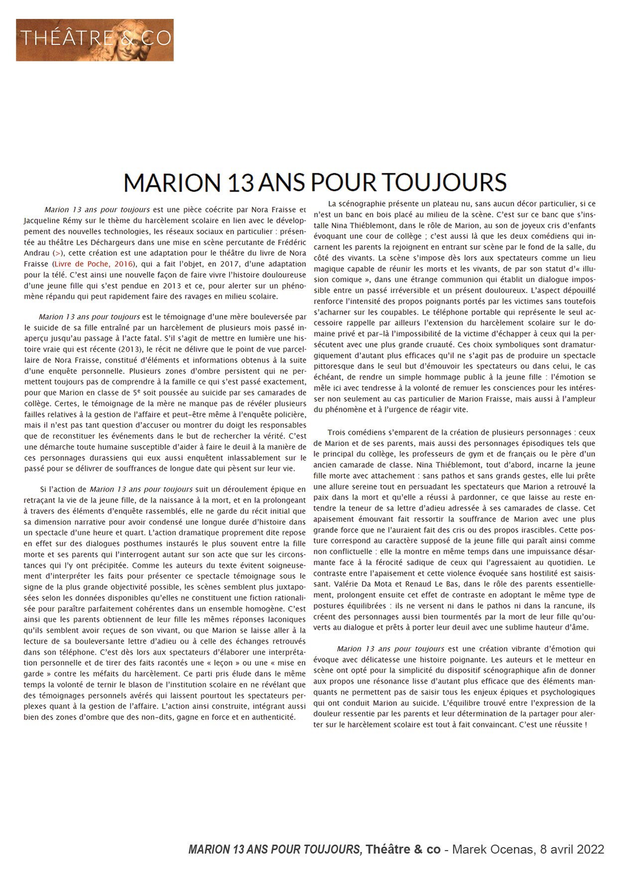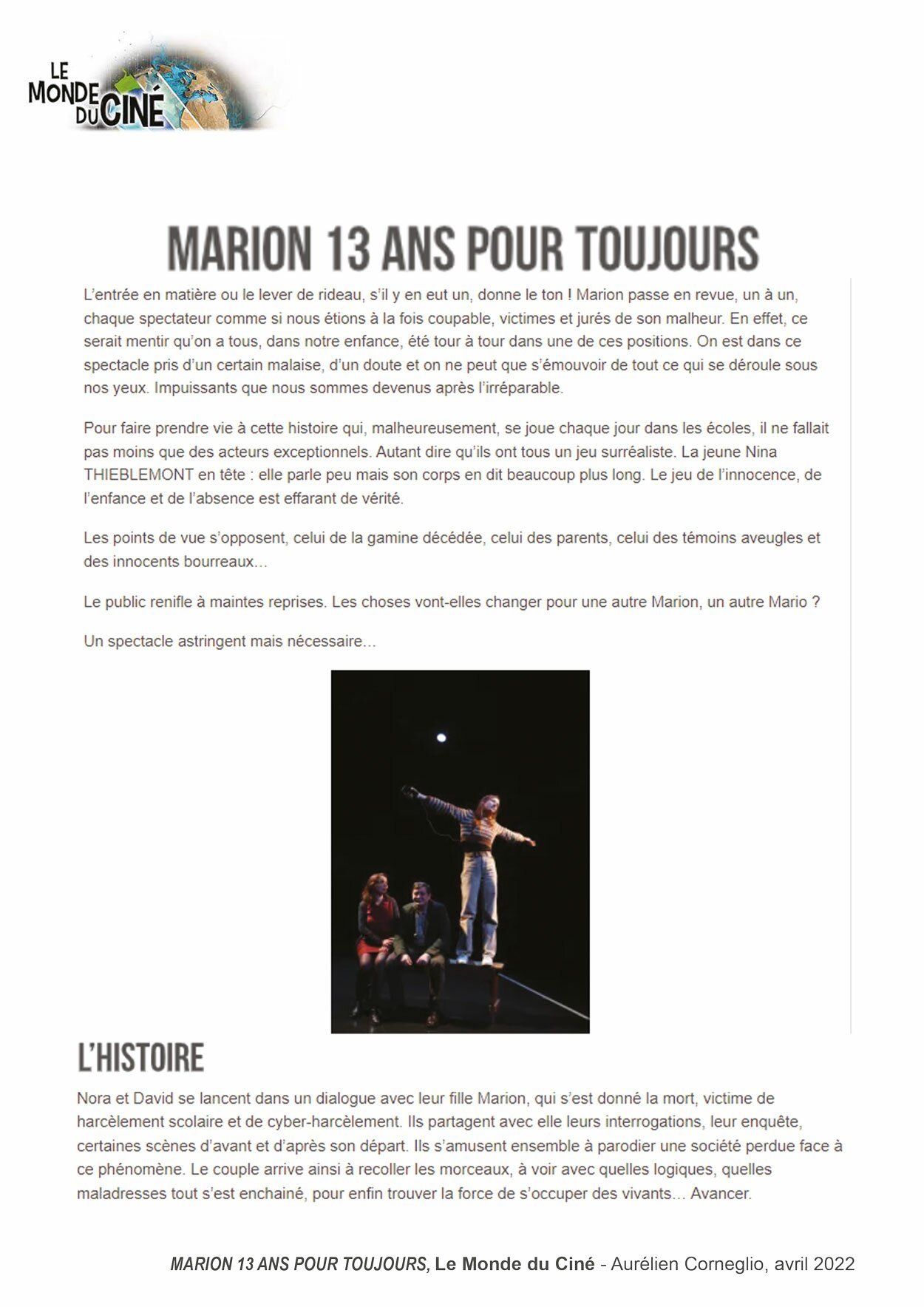 À PROPOS DE MARION, 13 ANS POUR TOUJOURS