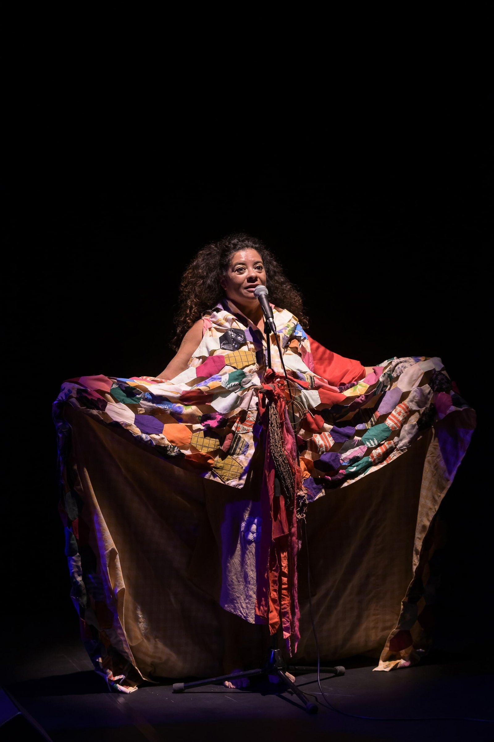 Sur une musique mêlant racines et machines, harmonies australes et percussions, Poème Confiné d’outre-mer nous convie à un voyage intérieur. C’est un texte-chair qui renoue avec les sens confisqués. Si le corps reste immobile, la pensée, elle, chemine et substitue à la géographie de l’île de la Réunion, une géographie du corps, celui de la femme. Ressurgit alors une mémoire-racine enfouie, qui vient « posséder » la carte du corps, la carte de l’île, la carte du monde.