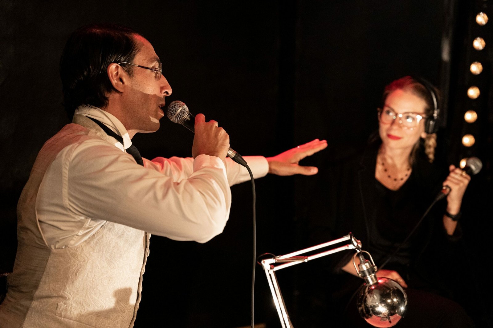 Sous la forme d’une émission de radio enregistrée en public, une chroniqueuse invite des artistes hommes à parler de leurs femmes créatrices. Richard Burton, Alfred de Musset, Jean Tinguely et bien d’autres dissèquent les mécanismes de la rivalité ou de l’alchimie : comment amour, travail et genre font-ils bon (ou mauvais) ménage, chez les artistes comme dans tous les couples ?